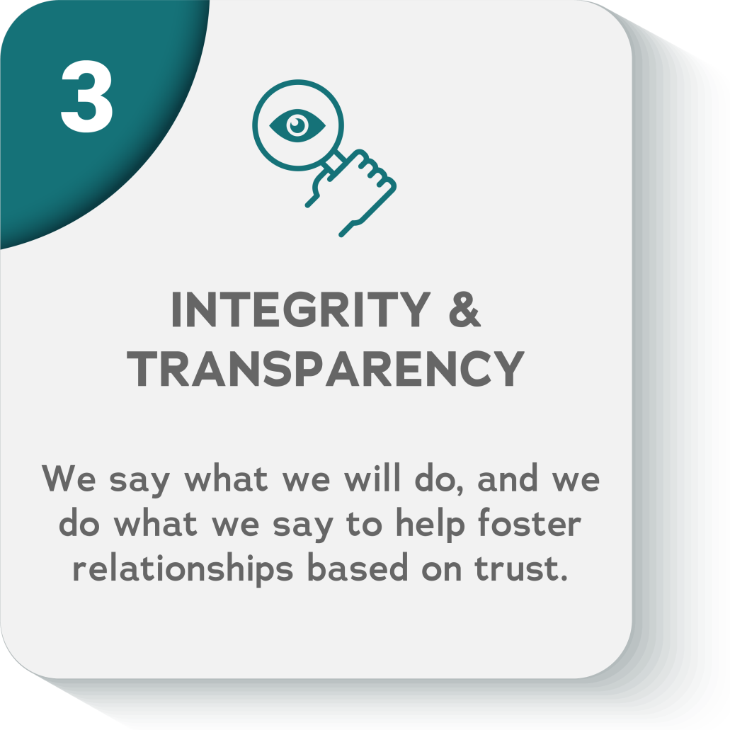 Our values reflect who we are as a company, form the basis for all our practices and policies and drive how we make decisions.
